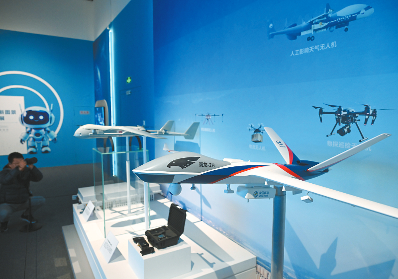 这是2月20日在网络发展新图景成就展上拍摄的无人机模型。当日,网络发展新图景成就展在北京中国国家博物馆开幕。展览分为“日新月异”“基础坚实”“融合赋能”“普惠利民”四个部分,充分展示网络赋能经济社会的壮阔图景。 新华社记者 金良快 摄
