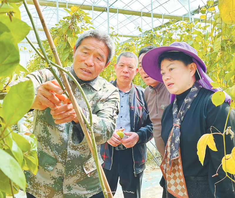 近日,位于永定区湖坑镇的江昊农业科技园内,“土专家”来到这里,指导“亲密9号”百香果截枝,助力农业生产提质增效。新春过后,永定区70多名“土专家”活跃在田间地头开展农业新技术指导,累计培训、传授农业种植技术100多场次,受训群众超过500人。 通讯员 熊川 摄