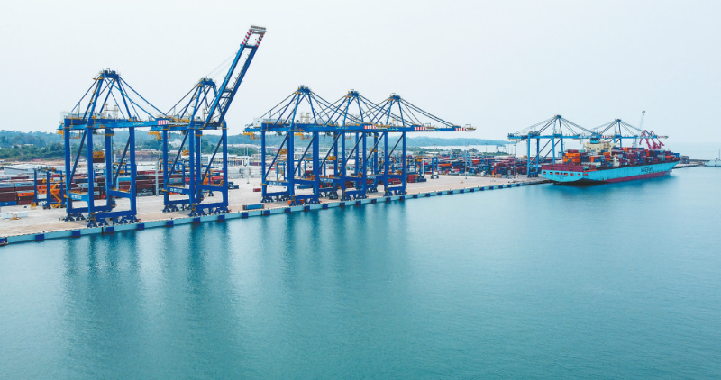 这是2月21日在喀麦隆南部大区的克里比拍摄的喀麦隆克里比深水港(无人机照片)。由中国港湾工程有限责任公司(中国港湾)承建的喀麦隆克里比深水港二期工程交工仪式21日在克里比深水港码头举行。仪式上,克里比港务局与中国港湾签订交工证明书,标志着在经历5年多的建设后,该项目正式交付喀方。 新华社发 科普索 摄