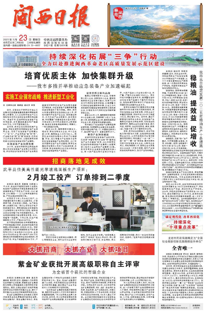 据悉,2022年以来,龙岩市级财政连续四年各安排预算资金1400万元扶持粮油生产,持续提高粮油生产效益,调动农民生产积极性。2024年,市级共兑现粮油生产扶持资金1501.295万元,超出预算资金101.295万元,政策效应显著,有效调动农民规模种粮意愿,进一步扩大“新农人”种粮队伍。全市粮食播种面积、总产、单产连续五年实现“三同步”增长,稳定粮油生产工作成效在2023年省对市绩效考评中排名第二,2023、2024连续两年粮食播种面积、总产量增量均排名全省第一,2024年发展粮油生产扶粮惠农政策创新做法在全省作典型发言。