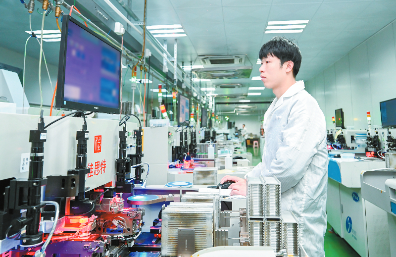 位于龙岩高新区(经开区)的龙岩德煜照明有限公司是一家专业生产各类LED灯丝产品的国家级高新技术企业,现拥有80条先进的LED封装自动化生产生产线,其产品处于国内领先水平。该公司依靠科技创新促发展,以研发一代、备用一代新产品思路为指导,具有自主产权的新产品销售总额占比逐年上升,截至2025年2月,自主产权新产品占比达70%,已获46项专利,其中发明专利1项。图为工作人员正在操作固晶机编辑程序。