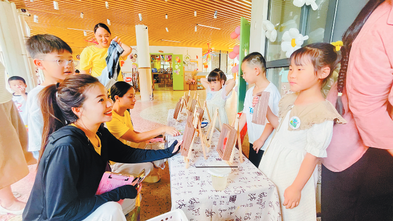 5月30日,漳平市城隍庙幼儿园举办一场别开生面的“劳动育人”童市活动,孩子们在动手实践中欢庆节日。萌娃变身为美食工坊小能手,制作艾草冻、地瓜泥冰激凌、水果茶等节令美食和艾草香皂、薄荷膏、皮影龙等工艺品,在各自摊位向“顾客”销售自己的劳动成果。龙媒体记者 赖韦元 通讯员 易晓霞 摄
