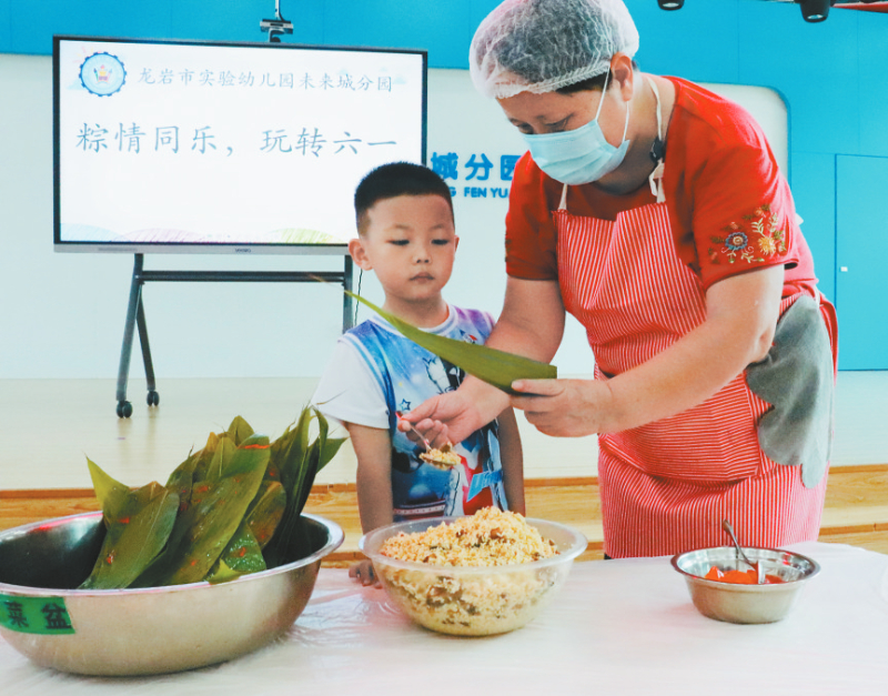 5月30日,龙岩实验幼儿园未来城分园联合社区开展“粽情童乐,玩转六一”主题游园活动,学习包粽子、绘彩蛋、编彩绳、拓印等传统技艺体验,以创新形式将端午文化传承与儿童节庆祝活动巧妙融合。孩子们用龙岩方言吟诵端午童谣,趣味龙舟接力赛重现端午竞技精神,让孩子们在欢乐运动中传承民俗文化。 龙媒体记者 林瑜 摄