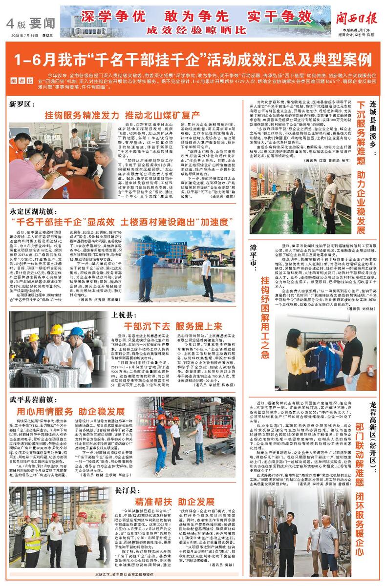 1-6月我市“千名干部挂千企”活动成效汇总及典型案例