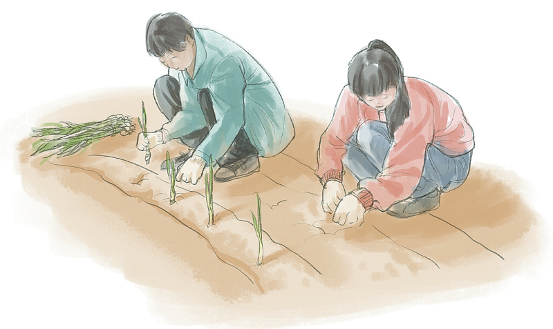 爱人买回蒜种后,看看菜地又看看我,二话没说便重新翻了一遍地、整畦、开沟、撒草木灰准备下种。邻居李叔拄着拐杖走到菜地边,慢条斯理地说:“你妈种蒜时可不是这样随便种种的,她讲究浅种、平放、蒜背朝东南。”我心想种蒜不就是简单地把蒜插到土里吗?还有什么讲究呢?李叔用拐杖指着间距让我点蒜,并解释道:“蒜不能竖种,要平放浅种,这样可以减轻土块对它的压力,让它长得轻松,蒜头才会更膨大。又因为蒜叶生长是对称排列互生的,如果蒜背朝东南方向,发芽后叶子均向东南,有利于吸收阳光,会长得更好。”劳动人民在劳动过程中总结出的经验,真的让我出乎意料,这也印证了优秀的传统文化要依靠劳动人民来传承的说法。