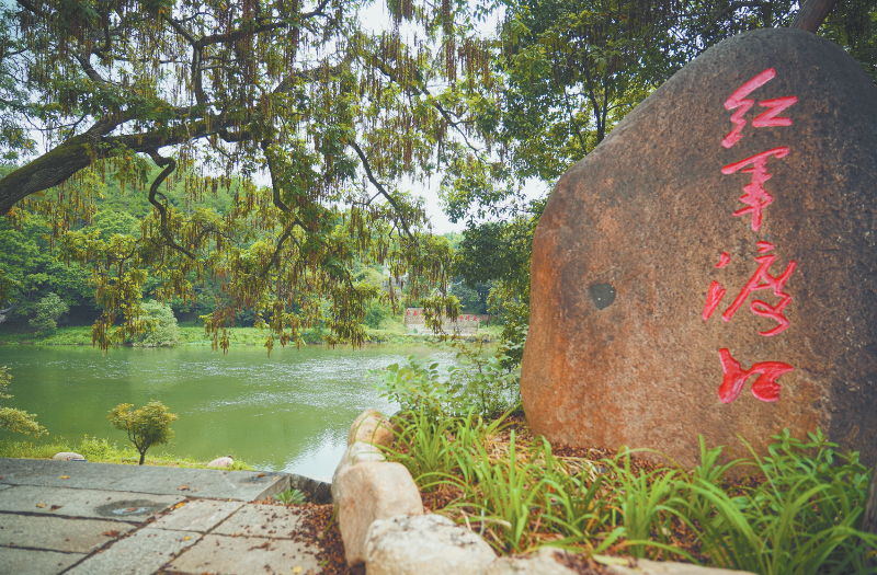 图为红旗跃过汀江纪念亭。