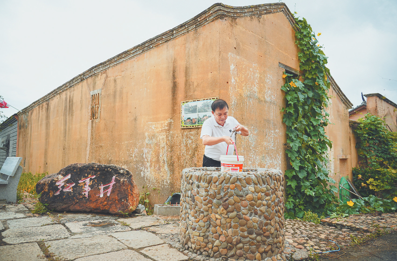 图为村民正在红军井打水。