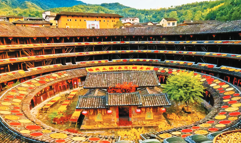 近日,福建土楼永定景区启动晒秋民俗文化季活动,以客家农耕文明为核心,通过沉浸式场景打造全国最大环形晒秋景观,推动农耕文明的年轻化诠释与情感化链接。 通讯员 熊川 摄