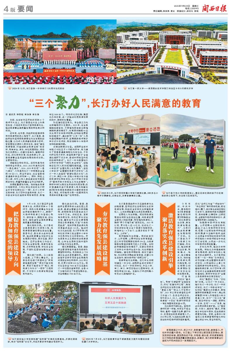 “三个聚力”,长汀办好人民满意的教育