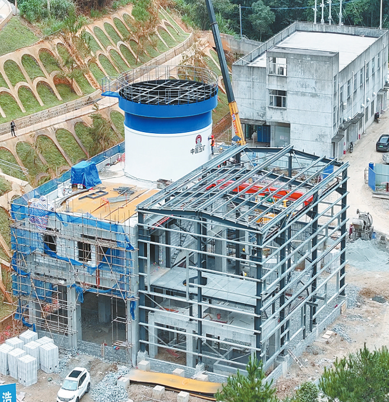 本报讯(通讯员 温连光 谢雯 李旦芳 文/图)近日,笔者在新罗区曹溪街道崎濑村天山矿业厂区看到,充填站建设现场一片繁忙,工作人员正在有序进行设备安装。目前,该站混凝土框架已完工。