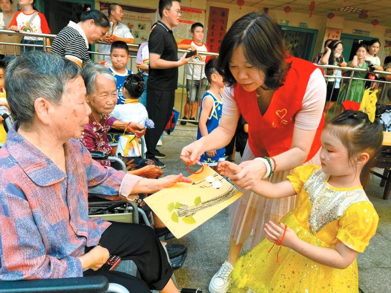 近日,漳平市城隍庙幼儿园的师生和家长志愿者,来到漳平市德亨仁厚养老养生中心,孩子们向老人们赠送自己制作的手工艺品,并表演了节目,给老人们带去了欢乐与温暖。 通讯员 赖韦元 林晓芳 摄