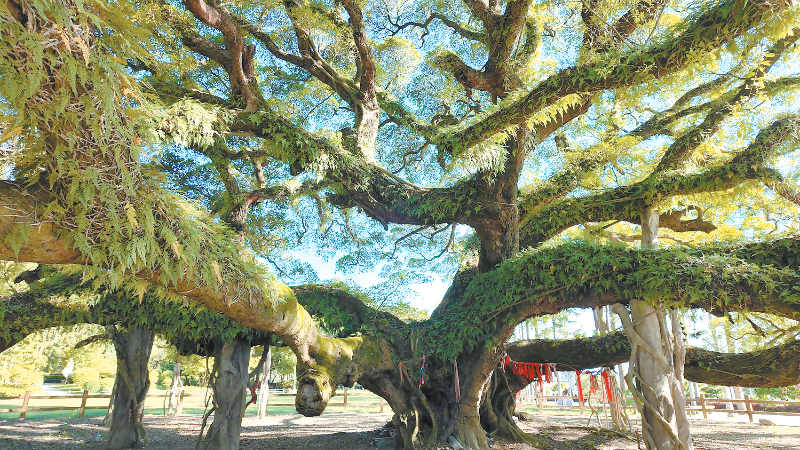 秋日的福州国家森林公园,千年古榕巍然挺立,枝叶如盖、苍劲擎天。树下游客络绎不绝,纷纷驻足合影,发出连连赞叹。