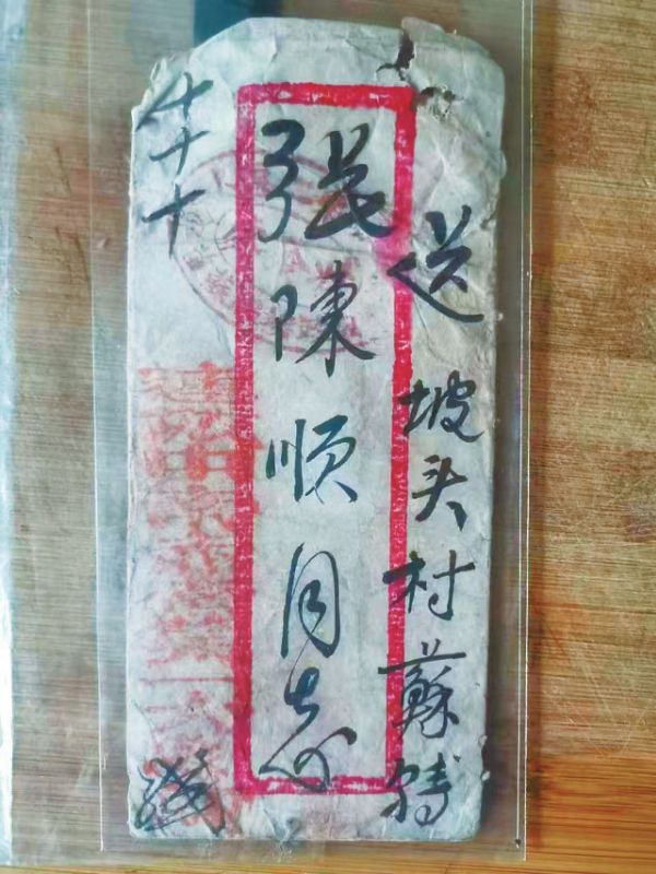 从各级国家博物馆陈列的苏区文物看,当时“乡苏”与“村苏”的称谓杂用,并无严格的规定。“坡头村苏”与“坡头乡苏”应属同一称谓。那接下来,收信人“张陈顺”就成了解读这个信封的关键。在村干部的引导下,我们见到了张陈顺的曾孙张杰生。遗憾的是,张杰生对曾祖父的情况几乎一无所知。幸好,村民张伟滨提供了重要的线索:“我爷爷张昌寿(又名张仁孜)也是在册的老游击队员,张陈顺是他的堂叔。爷爷说,张陈顺于1893年出生,读过私塾,人才出众,早期就加入了中国共产党,是本地的革命带头人之一。他曾经参加过在岭下村召开的连南十三乡暴动联席会议。暴动成功后参加赤卫队,后来编入红军正规部队。之后就没有回来了。”