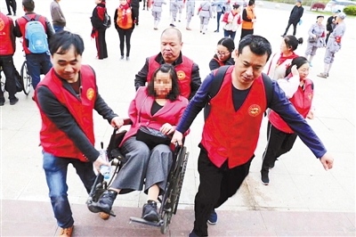 为歌颂雷锋精神、弘扬闽西红色革命精神、传承客家文化精神,3月23日,“2019年‘品味红色龙岩’第八届百名义工牵手百名残友快乐之旅——走进上杭红色革命圣地才溪大型助残公益活动”顺利举行。活动吸引了200多名残疾人和300名义工(志愿者)参加,总人数突破500人,打破历年来户外助残活动的纪录。图为活动现场。 记者 刘玉荣 通讯员 殷世龙 摄