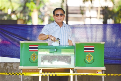 3月24日,泰国总理巴育在曼谷一个投票站投票。