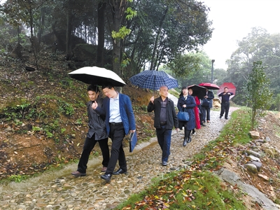 图为人们在洋畲村漫步。