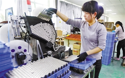 4月1日,在连城工业园区锂电池产业园一企业车间,工人给自动封装生产线添加18650型裸电池。今年以来,连城锂电池新能源产业加快集聚,先后签约、开工、竣工储能锂电池、小动力锂电池、锂电池包装材料、高倍率聚合物软包锂离子电池、储能及动力电池项目,总投资超10亿元。到年底,连城引进落户锂电池企业可达20家,产值可能超10亿元。