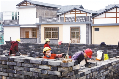 18日,在武平县城的武平兴贤坊传统文化街区项目,工人们正进行南门装修。目前,文化会客厅已封顶,其余项目正在如火如荼进行中。该项目总投资4.4亿,建设用地总面积1.9万平方米,将新建文化交流中心、客家传统民居等,建成集“旅游观光、文化体验、国学教育、休闲娱乐”功能为一体的传统文化街区,打造武平城市新名片和文化新地标。