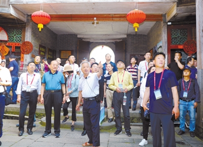 与会嘉宾来到永定区湖坑民俗文化村参观振成楼