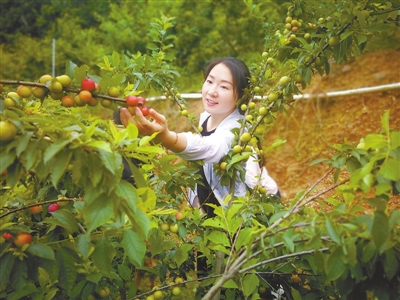 新罗区大池镇红斜村迎来大批游客采摘四月李