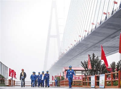 5月16日,中铁大桥局工人在武汉青山长江大桥施工现场。