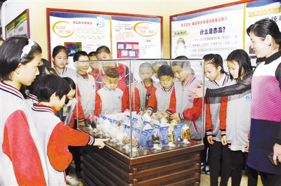 永定区龙凤小学把学校作为毒品预防教育的主战场,把禁毒知识和日常课程相结合,深入开展校园毒品预防教育,通过老师面对面授课,让学生自觉远离毒品、抵制毒品。图为近日,该校小学生参观设立在校内的永定区禁毒教育基地,老师正在教授学生如何识别毒品,认真了解毒品的危害。