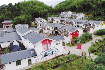 古田镇吴地社区,白墙灰瓦的房屋错落有致地分布在道路两旁。