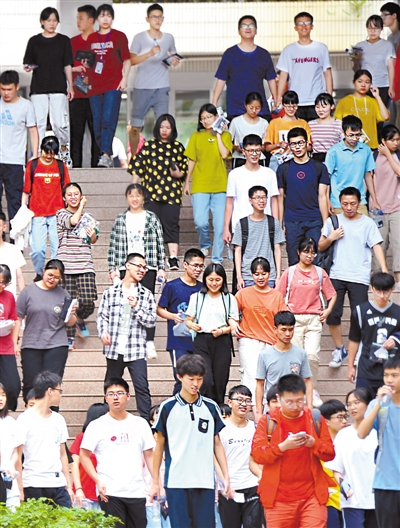 昨日高考最后一科结束后,在2019年福建省普通高等学校招生全国统一考试新罗区龙岩一中考点,考生们带着自信和轻松,有序地走出考场,开启新的人生旅程。 记者 王耀辉 傅长盛 摄