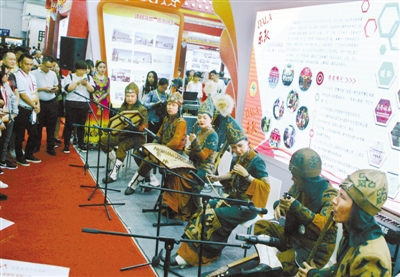 在第九届海峡两岸机械产业博览会暨第十一届中国龙岩投资项目洽谈会上,作为龙岩的对口援疆点,新疆馆带来了当地特产,以及两个当地知名乐队——DALA乐队和五叶草组合为大家演出助兴。 记者 曾志明 摄