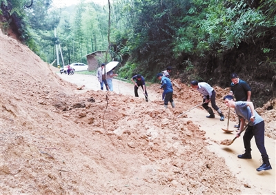 10日一大早,连城县塘前乡罗地村通往罗家山自然村的道路上,驻村的乡干部和村“两委”干部等手持铁锹清理溜方的泥土。这条道路是罗家山通往外面的唯一一条道路,9日晚上的暴雨造成道路多处溜方,影响车辆、群众通行,党员干群自觉动手清理溜方,经过两个多小时的清理,道路恢复通车。