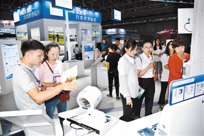 6月10日,观众在博鳌亚洲论坛全球健康博览会上了解展品信息。