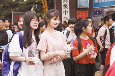 中心城区考场考生正愉快走出考场