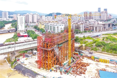 14日,中心城区龙岩大桥施工现场,工人们正进行主塔下横梁钢筋绑扎及模板加固。该项目预计于今年完成主塔塔身施工,明年4月完成转体施工,力争明年6月30日实现龙岩大桥主体通车,确保在明年12月30日实现项目全线竣工通车。 记者 陈律全 通讯员 苏贺兴 摄