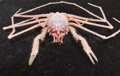 “发现”号遥控无人潜水器采集到的深海蟹(5月31日摄)。