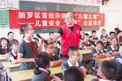 近日,新罗区南城街道莲东社区、社区妇女儿童之家携手壹公益组织、莲东小学共同举办“新罗区创建首批示范性儿童之家‘儿童五防’项目走进莲东社区”活动。“五防”是指:防性侵、防拐卖、防校园暴力、防意外、防灾害。活动现场,通过互动小游戏,以互问互答的方式对“儿童五防”专业知识进行了诠释。记者 罗玉文 通讯员 郭珊 摄