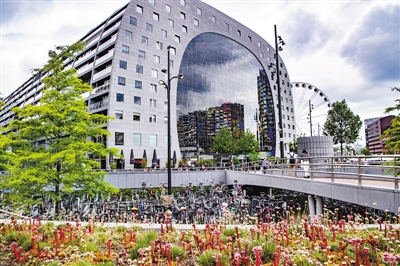 这是6月16日在荷兰鹿特丹缤纷菜市场旁拍摄的自行车停车场。