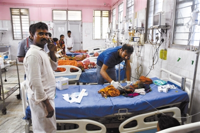 6月17日,在印度东部比哈尔邦的巴特那,儿童在一家医院内接受治疗。据印度多家媒体17日报道,印度东部比哈尔邦急性脑炎肆虐,进入6月以来因患急性脑炎死亡儿童人数已升至100人。当地政府要求卫生部门采取一切可能措施遏制疫情蔓延。