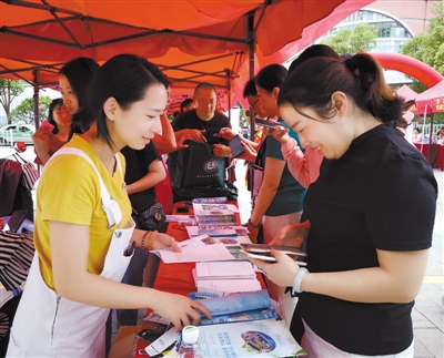 6月17日至23日为全国节能宣传周,昨日,由市节能办主办、市工信局承办,以“绿色发展,节能先行”为主题的节能宣传周集中活动在新罗区万宝广场举办。各相关部门、节能产品企业通过摆放展板、发放宣传材料、现场咨询讲解、有奖竞猜等形式,向市民普及节能减排、低碳生活知识,扩大节能宣传影响面。图为工作人员正向市民发放宣传材料。 记者 罗姝 通讯员 方来杭 摄