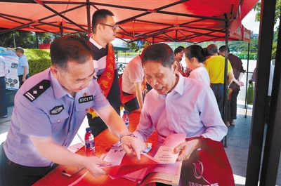 为进一步推进打击整治枪爆违法犯罪专项行动,6月14日上午,上杭县公安局结合第十八个全国“安全生产月”宣传活动在江滨路人民广场组织开展了打击整治枪爆违法犯罪行动集中宣传活动。此次集中宣传共发放各类宣传手册1500多份,接受群众咨询200余人次。 通讯员 李碧英 张璇 摄