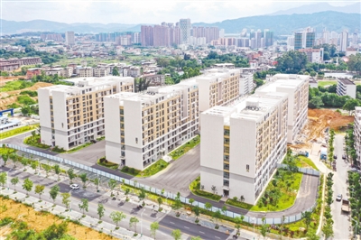 19日,在新罗区曹溪街道五星路西侧,闽西职业技术学院扩建项目一期学生公寓即将装修完成,将进行配套绿化及道路等建设。二期将建设公共实训基地,包括实训实验楼、教学楼等,项目总投资9423万元,总建筑面积24647平方米。 记者 陈律全 摄