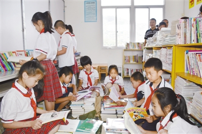 近日,福建省慈善总会副秘书长郑桂秀带领爱心企业福建省鹏洲建设发展有限公司、华城建设集团有限公司代表来到永定区虎岗中心小学捐赠价值6万元的图书,受到师生的热烈欢迎。图为学生们兴高采烈观看新书的情景。