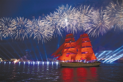 6月24日凌晨,红色帆船行驶在俄罗斯圣彼得堡的涅瓦河上。当地时间23日晚至24日凌晨,俄罗斯圣彼得堡欢庆一年一度的“红帆节”,庆祝中学生们毕业,走向人生新的起点。“红帆节”得名于俄罗斯作家格林创作于1923年的作品《红帆》。《红帆》讲述了一个富有传奇色彩的浪漫爱情故事,鼓励人们对生活充满希望,用自己的双手以及真诚和信念去创造奇迹。 新华社发 莫京娜 摄