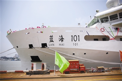 当日,我国最大的两艘海洋渔业综合科学调查船“蓝海101”“蓝海201”在沪东中华造船(集团)有限公司正式交付使用,将以优良的船舶性能和强大的科考功能服务海洋渔业资源调查。