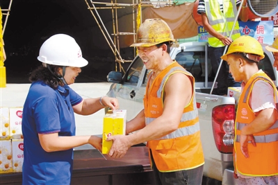 为庆祝建党98周年,龙岩靖永高速公路有限责任公司多形式开展庆祝活动,通过组织党员参观红色旧址,开展“不忘建设初心、牢记安全使命”主题教育活动、重温入党誓词、走访慰问困难党员和一线工人等,进一步凝聚基层党建合力。图为该公司为一线工人送去菊花茶、藿香正气水以及清凉油等防暑降温物资。 记者 罗玉文 通讯员 刘贵福 摄