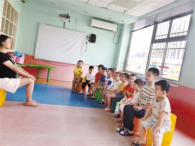 图为近日,中心城区一英语培训机构内,孩子们正在上课。