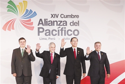 第14届太平洋联盟首脑峰会6日在秘鲁首都利马举行。会议通过《利马声明》,承诺深化区域经济一体化和维护多边贸易体制。 新华社 发