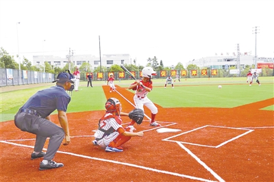 7日下午,第十一届海峡论坛·第九届海峡客家风情节暨海峡两岸(连城)棒球文化节邀请赛决赛在连城县棒球场举行。本次比赛从7月4日开始,共有9支代表队参加,经过15场比赛,来自台湾的新竹县上馆小学和台东县太平小学进入最终对决,新竹县上馆小学战胜对手取得本次比赛冠军,台东县太平小学获得亚军。连城县实验小学、厦门瑞景小学获得季军,台东县太平小学的杜志宇获得美技奖,新竹县上馆小学的罗钧皓、古定玄分别获得打击奖和最佳球员,新竹县上馆小学的沈琮华获评最佳教练。图为来自台湾的棒球队在比赛。