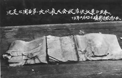 图为1973年2月蛟洋发现的中共闽西一大决议案文稿。