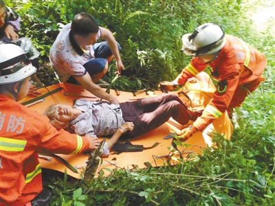 7月31日15时许,连城县揭乐乡吕屋村一名老人上山采药时不慎摔伤被困山中。连城县消防大队接到报警求助后携带多功能担架等,与派出所民警和家属一起通过老人携带的手机定位上山搜寻,并将老人抬下山交给医护人员救治。