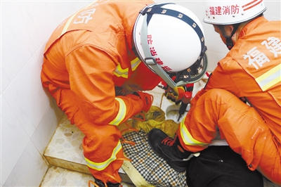 7月28日12时12分,武平县园丁村一名70多岁的老奶奶手被卡在蹲厕排污口里无法拔出。接到求助后,武平消防大队消防员立即赶赴现场,利用气动切割刀小心翼翼地将蹲盆破拆,使老奶奶的手解脱出来。原来,老奶奶上厕时不慎将手上戴的金戒指掉落在排污口内,便急忙用手去捡,结果被卡住了。